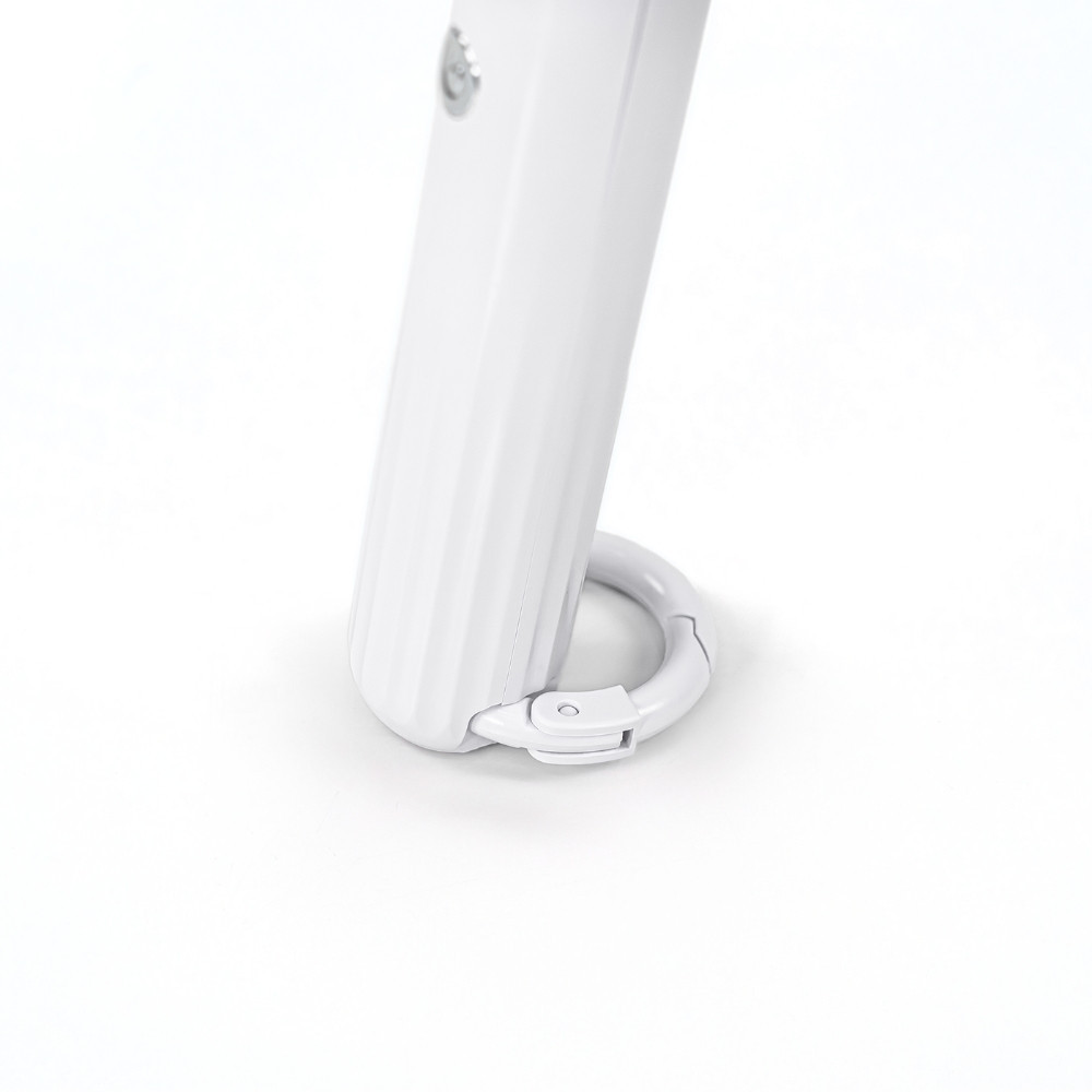 A ventilátor modern, letisztult kialakítása tökéletesen illik irodai környezetbe is – akár egy dizájnos kütyü. A visszafogott fehér szín és az alumínium borítás prémium hatást kelt, miközben a strapabíró ABS műanyag test gondoskodik a tartósságról és biztonságos használatról.