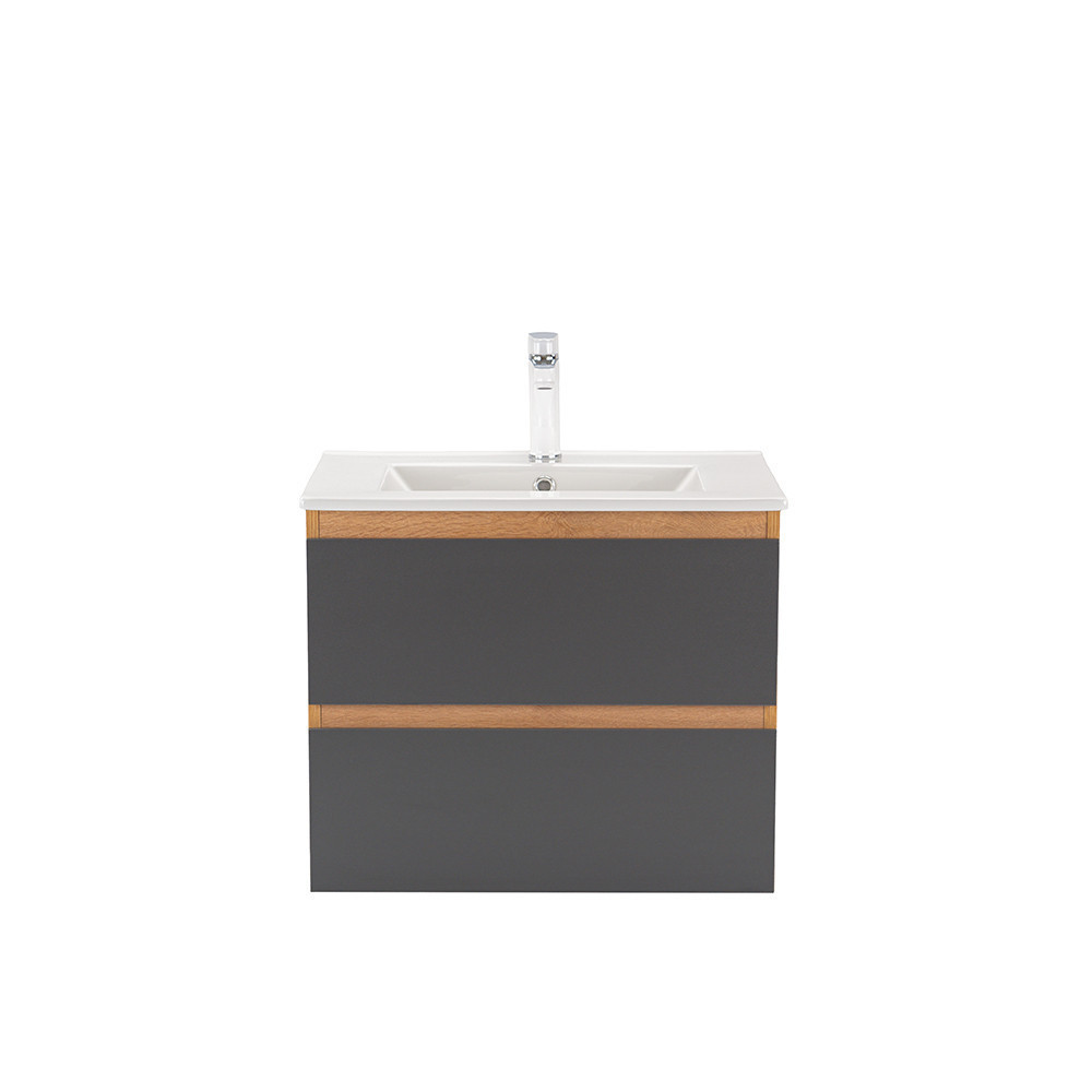 A Vario Forte 60 komplett fürdőszobabútor egy stílusos és praktikus választás modern fürdőszobához. Kompakt méretei ideálisak kisebb és közepes méretű fürdőszobákba is, a 45 fokos élzáródás modern hatást, a tölgy-antracit színű dizájn elegáns megjelenést kölcsönöz a térnek. A csillapítós fiókzáródás és a felfüggesztett kivitel a kényelmet és könnyű tisztántartást szolgálja, míg a minőségi anyagok hosszú élettartamot biztosítanak.