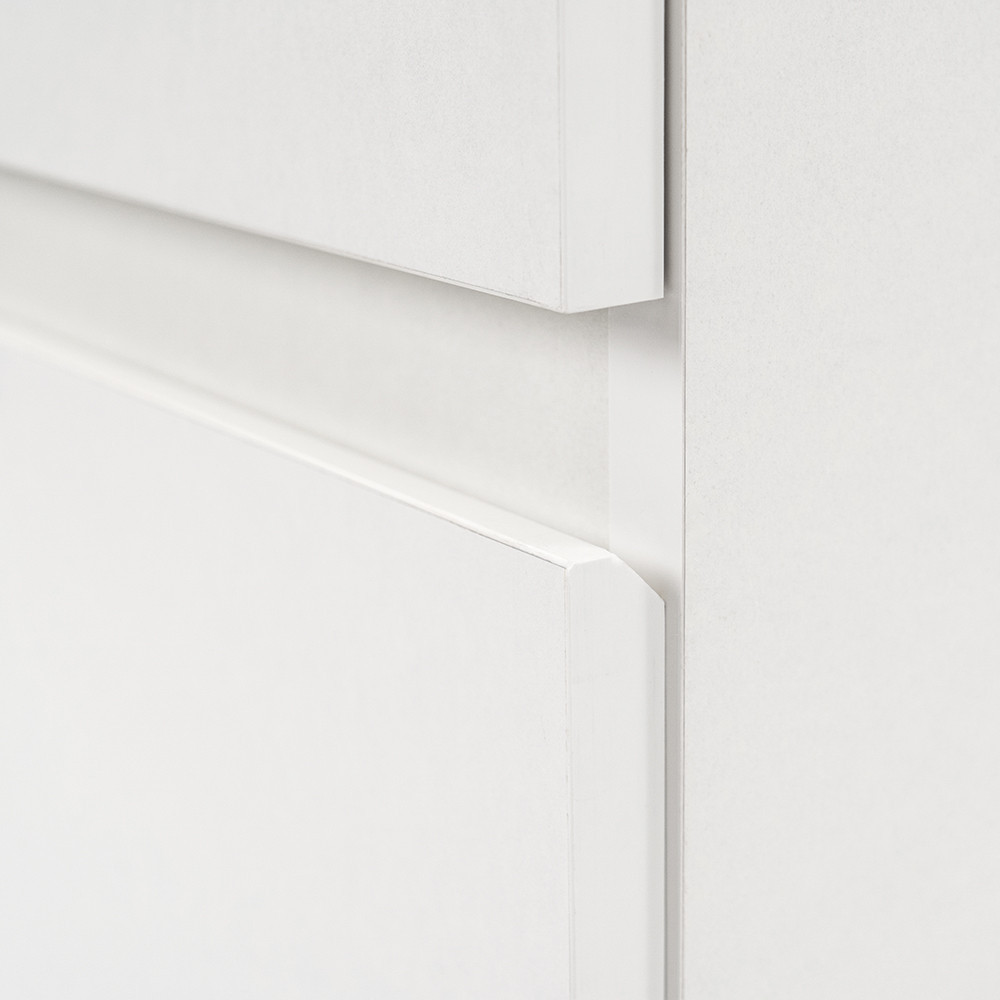 Az fehér színű korpusz és a fehér front kombinációja elegáns és időtálló megjelenést kölcsönöz a bútornak.